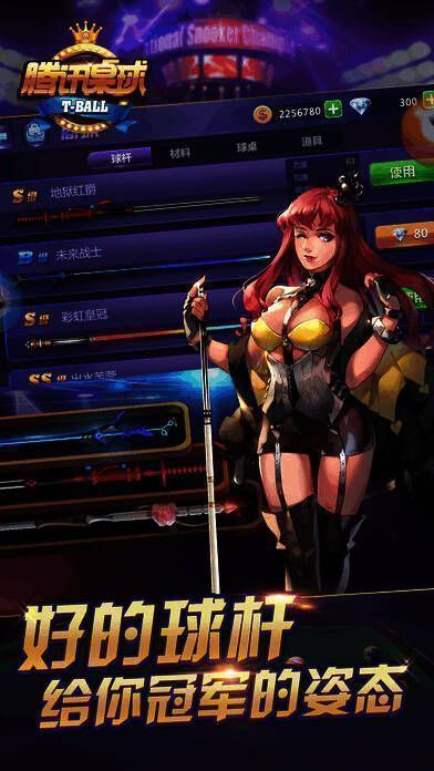 4、酷炫装备:游戏配备多种属性、不同品质外形的球杆和球桌,超炫球技彰显至尊身份。