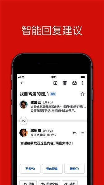 4. 具备智能回复建议功能,收到邮件时自动给出回复建议,提升工作效率。
