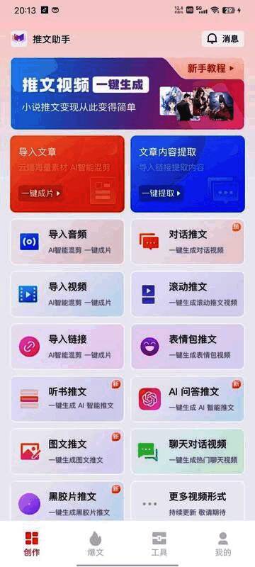 2. 全面素材支持:拥有海量热门短视频与小说素材,满足多样需求,提供丰富灵感,降低素材查找成本。