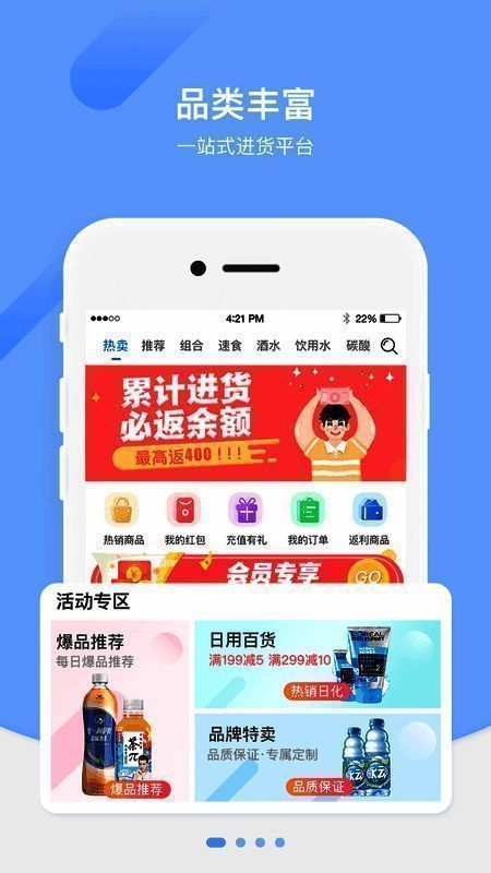 1、具备多、快、好、省的特点,多店拼单能降低成本,支持B2B线上随时订退货。