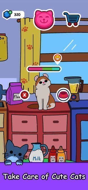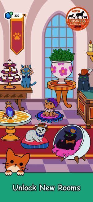 3、赚取水晶,为猫咪开启更漂亮房间,用它们爱吃的食物喂养。