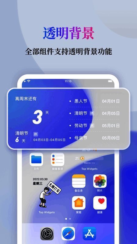3. 提供各类组件的内容和布局,助力用户打造满意的桌面效果。