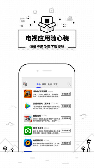 1、受千万电视用户青睐,能轻松管理电视。全网视频一点即播,海量应用一键下载。