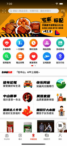 可查看中山本地最新热点信息;支持在线购买食品,一键下单送货上门;提供话费充值服务,九五折充值三网话费;搭建继续教育平台,随时学习。
