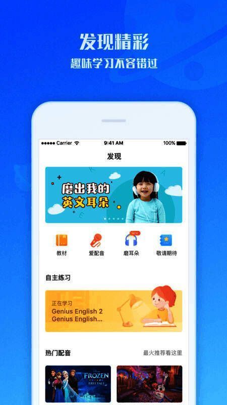 v1.8.0 版本:1、新增磨耳朵功能,用英文儿歌故事练听力;2、自学板块升级为发现,有更多有趣内容等探索。