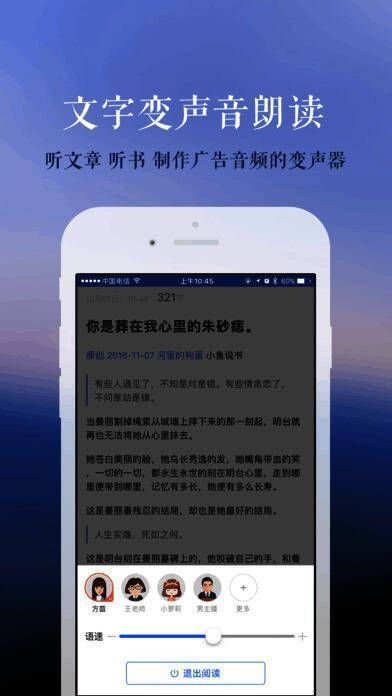 4、语音听书功能可将阅读软件里的电子书朗读,支持多看阅读等多款软件。