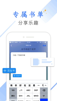 书友圈齐分享:可以分享读书体验,发现有趣书单,丰富阅读感受,不管是热门还是冷门小说,都能在这里找到并与同好交流互动,以文会友。
