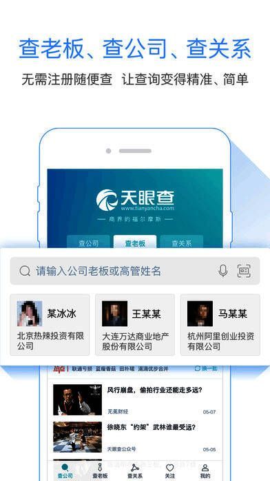 版本 5.3.1 新功能:搜索框新增三栏,可快速切换查公司、查老板、查关系;新增查老板模块;优化人名去重功能;查关系功能更强大;修复用户反馈问题。