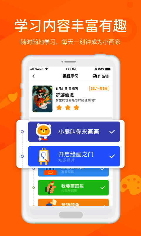 小熊美术 app 是专业的 AI 智能教学平台,主要为 3 - 8 岁儿童提供丰富的美术课程学习服务。安卓版课程丰富,由专业教研团队根据孩子特点打造,符合孩子学习兴趣需求。通过动画与 AI 结合的形式,激发孩子绘画学习兴趣。手机版学习内容丰富有趣,采用人工智能 AI 交互技术,让孩子学习时能随时进行场景互动,学习更有趣、愉快。有需要的用户快来下载体验!