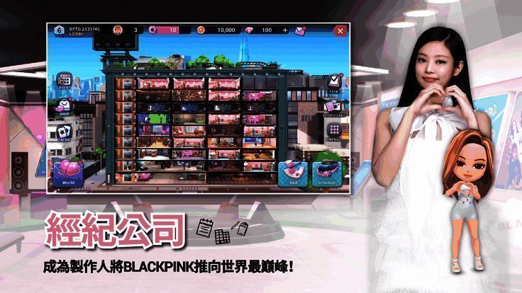 BLACKPINK THE GAME 游戏可供玩家下载,在游戏里能负责安排 BLACKPINK 成员的日程、化妆以及服装设计等事务。通过持续提升成员的能力与名气,助力她们成为真正的明星。游戏融入了音乐元素,以 BLACKPINK 成员的歌曲作背景音乐,带来沉浸式体验,让粉丝感受她们的音乐与气质,还能展示玩家的操作与音乐品味。