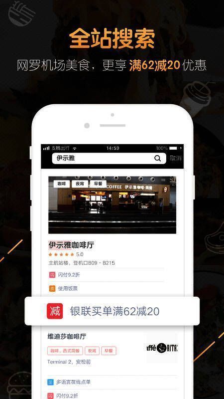 4、机场吃货专区:众多餐厅优惠活动,帮您选好机场用餐去处;