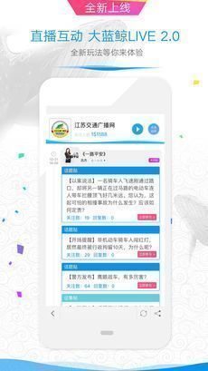 4、《大蓝鲸》是江苏人民广播电台独家定制的多媒体互动平台,发布信息坚守媒体公信力,对发布虚假、色情、反动等不法信息的人采取一票否决。