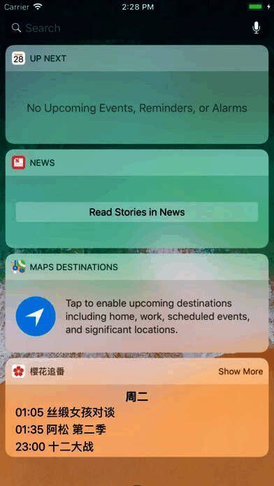 樱花追番app是实用的动画追番应用,提供当季新番放送时间表和放送源信息。打开通知中心插件,能显示当日关注番剧。番剧更新数据全,更新时间一目了然,添加到通知中心可第一时间接收更新推送,不容错过精彩,赶紧下载吧!