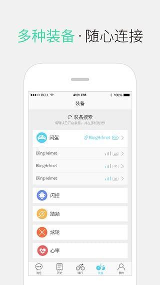 该软件支持通过蓝牙连接LIVALL安全智能头盔、闪控以及智能踏频等设备,让骑行数据更加完整精确!