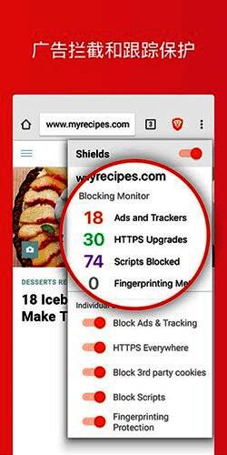 2. 高效的广告拦截:内置强大广告拦截器,能迅速屏蔽恶意广告、跟踪器和弹窗,提供清爽无扰的浏览环境,提升上网体验,减少流量与电池消耗。