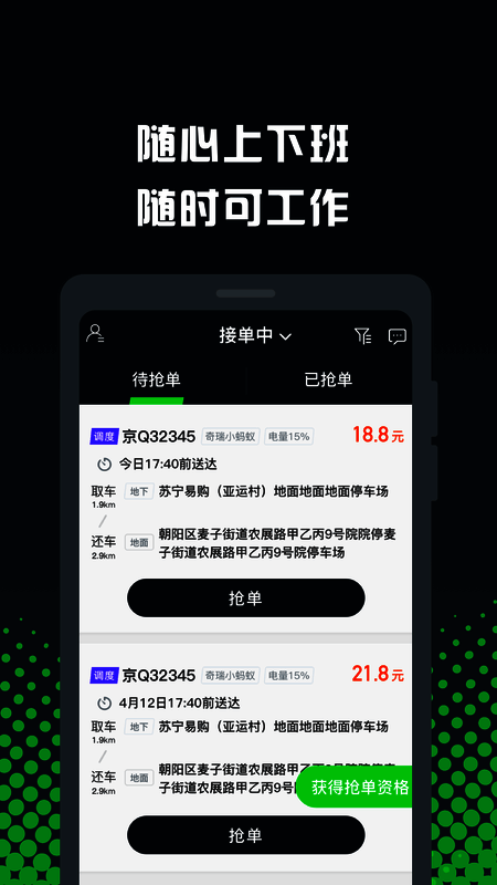 1. 在GoFun众包上能在线查看抢单要求,完成资格认证后即可抢单。