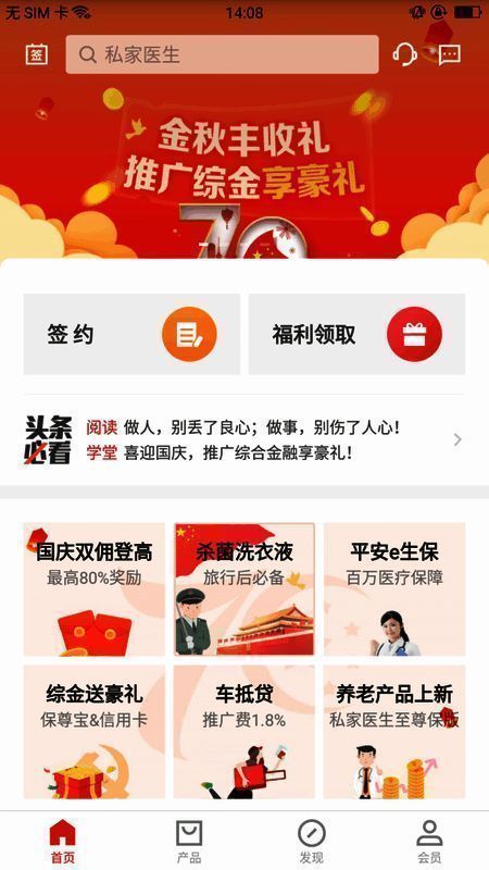 每日登陆签到领福利;点击首页推荐头条查看内容;点击保险商品了解保险知识和品种,可自购或推荐朋友赚推广费,保险种类多样;海量生活日用品在“产品”页面的日用品栏可找到。