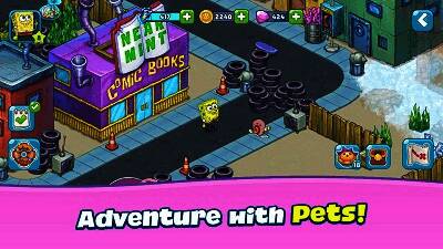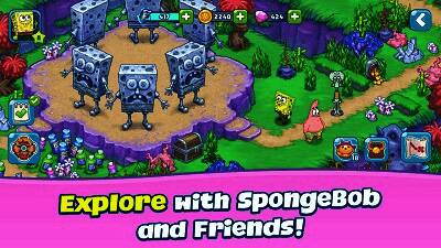 游戏中有海绵宝宝等经典卡通人物,画面精美、色彩鲜艳,为玩家带来愉悦的视觉享受。还有多种道具装备供玩家选择使用,可增强角色能力,提升冒险成功率。并且会定期举办各类活动和比赛,玩家参与能获得丰厚奖励,增添游戏的挑战性与持久性。游戏里有很多熟悉的角色,玩家可点击与之交流互动。