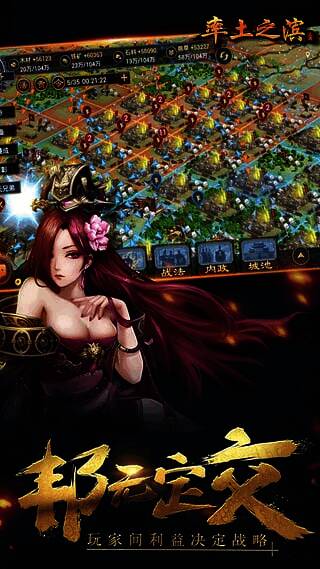 《率土之滨》是一款前所未有的多人地缘战略手游(MMOSLG)。在这款军政战略大手游中,诚邀各位主公开国吞天!主公的目标是发展军政,强大国家。由于世界领土资源有限,主公需与其他玩家展开激烈争夺。在这大争之世,战火弥漫,您可以招募名将、发展军政、结交盟友,不断扩充势力。权利的游戏没有剧本,世界发展是三国演绎、七雄对决,甚至一统天下,全由主公主宰!