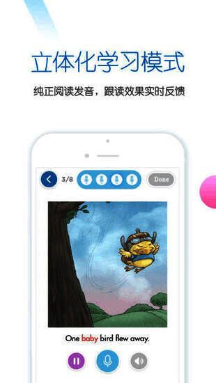 2、立体化学习模式:原版语音磨听力,朗读评测练发音,阅读绘本涨知识,读后测验练思维。