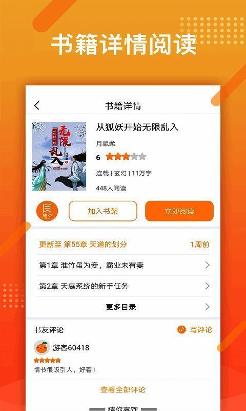 橘子小说苹果免费阅读器整合多平台小说资源,让阅读更轻松。这里有超多优质小说,能让你享受美好的阅读体验,各类优质小说都能找到。