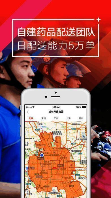 借助遍布一线城市的自营实体药店网络,保障所有药品能在 1 小时内送达。目前,自营药店服务网络已覆盖北京、上海、深圳、杭州和广州,日配送能力超 5 万单,服务好评率高达 99%。