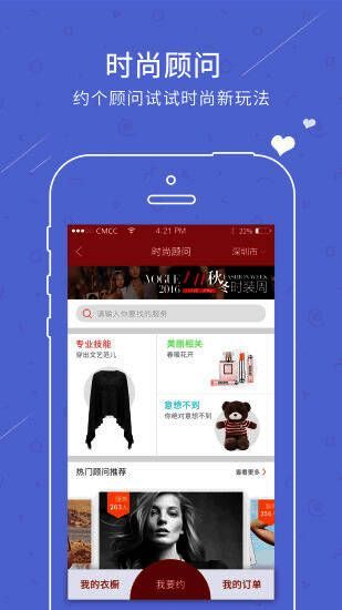 2. 时尚顾问:平台认证的专业设计师和时尚达人,提供一对一的“衣橱整理”“购衣计划”等在线服务,还能预约陪逛街,助力用户定制搭配、提升衣品、改善个人形象。