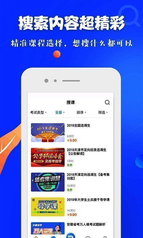 19课堂APP是直播教育平台,为报考各类资格证、工作考试的考生提供教学服务。平台涵盖教师资格证考试、事业单位考试、公务员考试、银行招考、教师招考等多种直播内容,全方位教学助力考生通过考试。直播由知名教师授课,内容实用好记,助考生短时间掌握知识点与解题思路。想通过国考和资格考试的用户,快来下载使用。