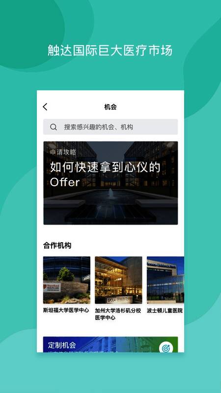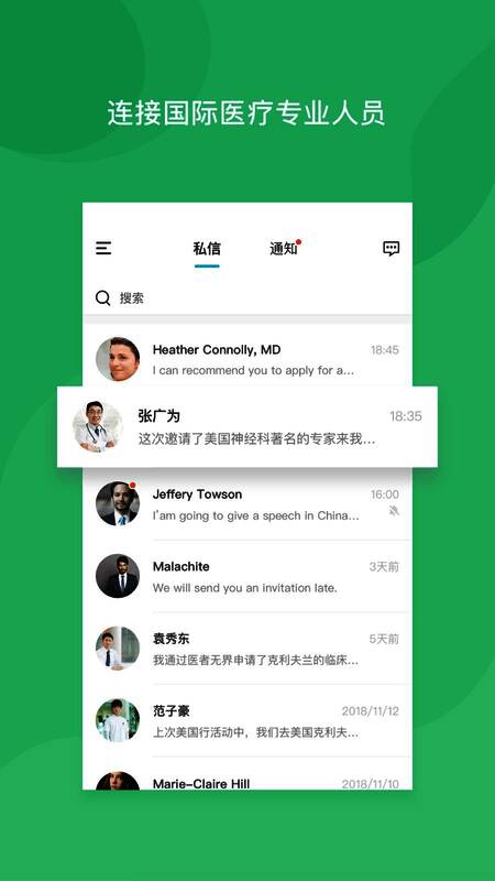 《医者无界》汇聚中美顶级医疗机构,连接中美优秀临床医疗专业人员。注册用户可与中美两国顶尖医疗专家随时交流学习,还能获得直通海外医院进修临床观摩机会和权威线上教育课程,推动专业发展。