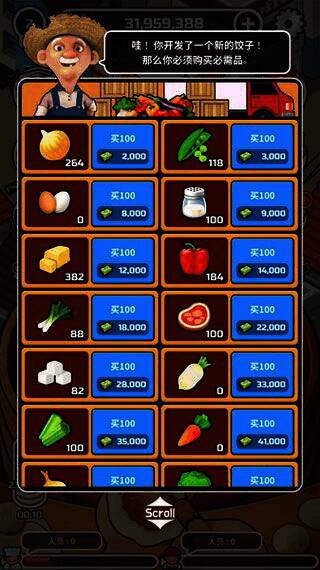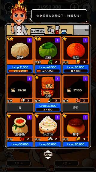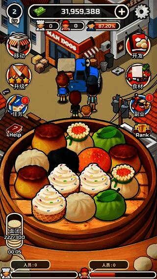 雇佣员工协助经营;研发多样饺子争取更好成果;用赚的钱解锁优质厨房和道具,扩张生意;升级提升赚钱效率的选项。