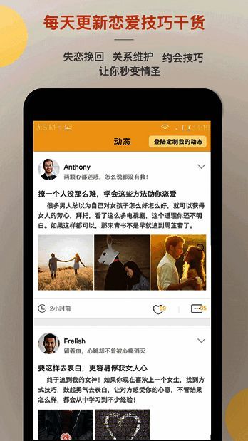 2、每日更新恋爱技巧、恋爱语录等干货,且可免费使用。