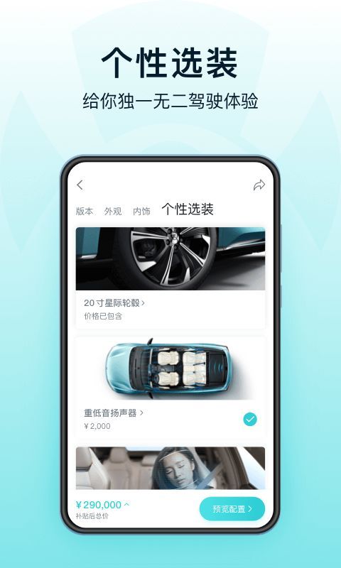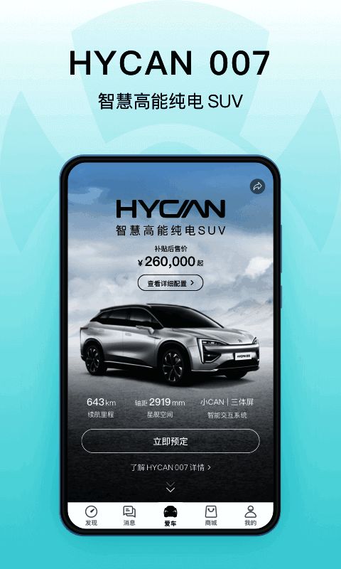 HYCAN合创是一款智慧出行软件,专注于新能源整车开发与用户服务,能为用户选车提供有效帮助,轻松找到心仪车型。这里有独家品牌资讯、用户社区精彩分享,可了解大量车型选择资讯。点击车型能直接预览车子内饰外观,选择车辆颜色等信息。平台会标注车辆各种配饰价格,还能分享车辆信息。开设的社区可让用户与众多用户互动交流,快来下载体验。