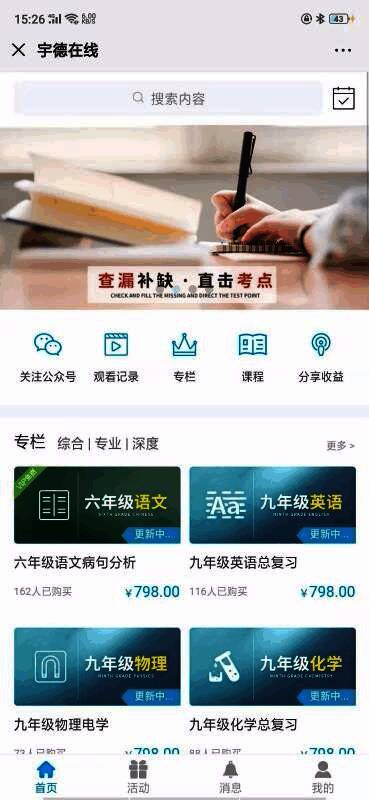 查漏补缺,直击考点!《宇德在线》是一款极为出色的学习教育软件。该软件内课程丰富,不管是初中课程还是高中课程,都能轻松找到。它会自动记录错题,方便你查看错题信息,还能随时查看学习记录,掌握学习进度。更有专业名师讲堂,为你答疑解惑。