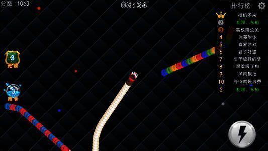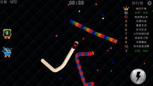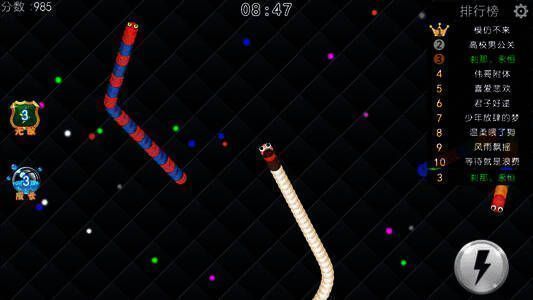 3. 长按加速键,用巧妙走位让其他蛇撞上自己的蛇身,就能吃掉尸体快速变长。
