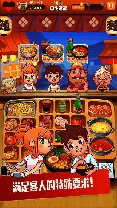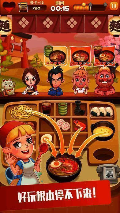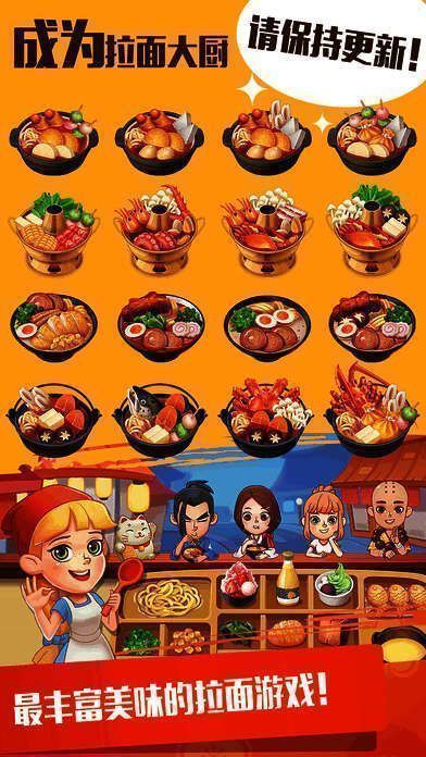 这是一款拉面店经营类游戏。你能经营多家拉面店,学习传统与创新拉面菜式,满足顾客多样需求,赚取丰厚利润,购买道具升级厨房,挑战更多关卡,成为精通拉面的明星大厨。