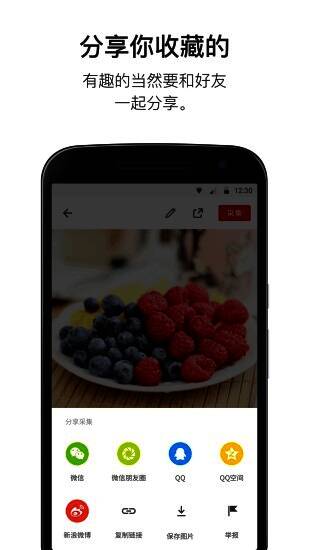 5、通过微信、微博等渠道分享喜欢或收藏的内容,将灵感传递给好友。