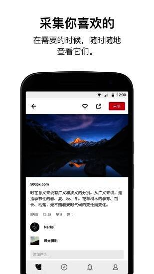 进行转采、点赞、评论,关注感兴趣的用户并一同分享