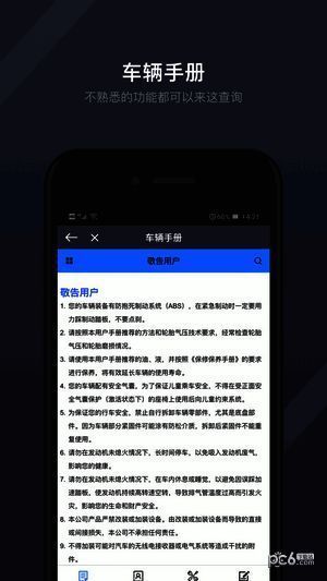 提供车辆使用手册供查询;一人一号连接爱车,随时查看与操控;远程控制需牢记安全码保障安全;有GPS信号就能确定爱车位置。