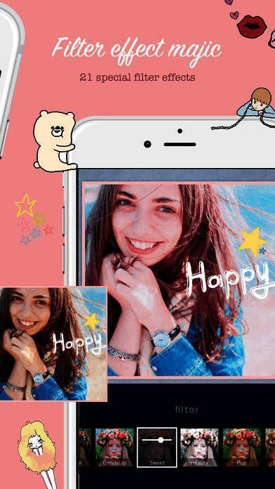 3、应用时髦的过滤器和大量邮票,能让你自由设计照片。