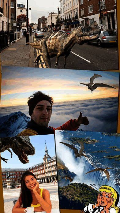 你可以在照片上使用超过60种恐龙贴纸。应用涵盖了众多恐龙种类,如暴龙、无齿翼龙、剑龙、副栉龙属、角鼻龙、野牛龙属、圆顶龙、棘龙、犹他盗龙、冠龙、始祖鸟、甲龙、戟龙、叉龙属等。