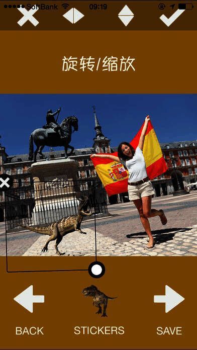 《恐龙相机》是一款能将各类恐龙贴纸添加到个人照片中的应用。它为用户提供了丰富多样的恐龙形象,支持对恐龙贴纸进行旋转和位置调整,以便更好地适配照片。此外,该应用还支持将处理后的照片分享到社交朋友圈,与好友一同分享欢乐。