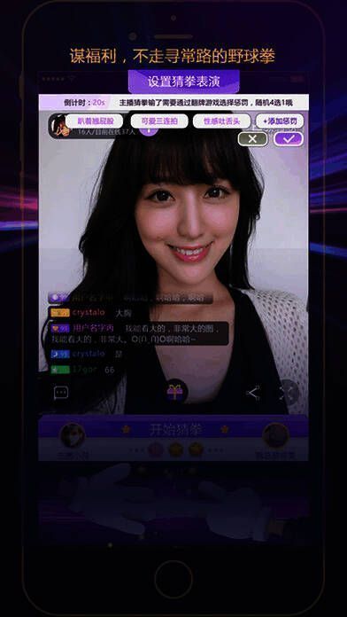 2. 【独创游戏】有独特的游戏互动玩法,能和主播连线玩猜拳等小游戏,要是在游戏里战胜主播,主播会接受惩罚表演。