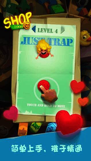 按住屏幕,操控小女孩跑动躲避小怪兽,所有陷阱都是你的战斗武器,赶快点击击败敌人!