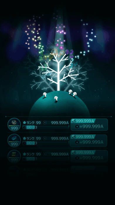 可增加宝石含量,提升生产率。当生产率提高后,就能获得新的宝石。有了新宝石,树木会结出果实,变得更加生机勃勃。也能通过敲击树木来生产珠宝。玩家可利用收集的宝石在Seisan屏幕上开发一个小世界。随着各个房间的发展,宝石的生产率会大幅提高。游戏还支持各种设置,有五种类型的背景音乐,能让你在喜爱的音乐中得到治愈。即便应用未运行,奖金仍会持续累积。