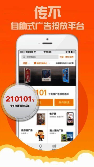传不 app 是成都传不科技打造的面向小微企业和个人用户市场的全国楼宇广告投放平台。广告主能更轻松地按统一定价和反馈方式,针对多个城市的不同广告商家,以合理价格实时预定购买优质楼宇广告库存,还能通过统一接口管理一个或多个楼宇广告,降低投放门槛,实现精准投放,降低推广成本,增强广告传递效果。社区广告投放轻松搞定,是品牌推广好帮手。