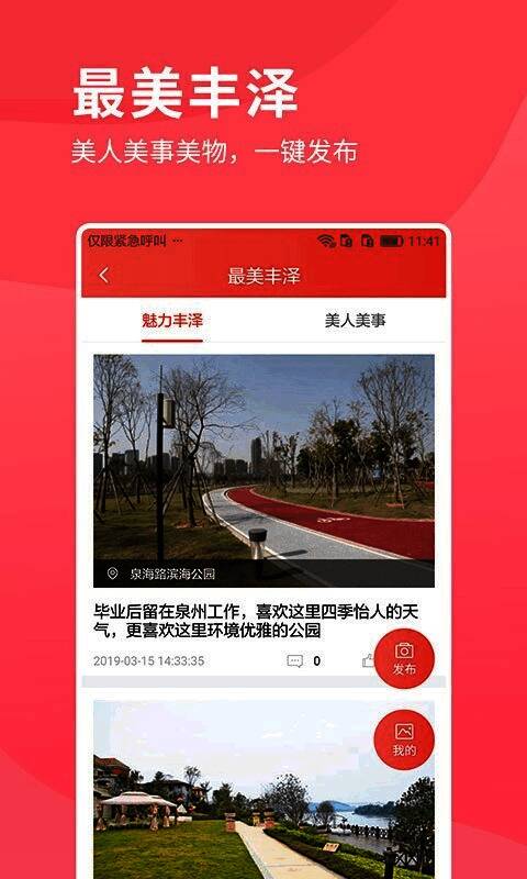 2、设有最美丰泽风景线板块,用户能观看丰泽的美人美事美物,还可一键发布自己拍摄的美丽风景图。