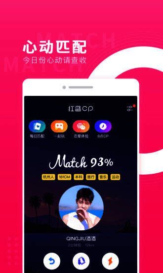 1、借助资料算法匹配CP,支持就近同城交友,配对后交友成功率较高。
