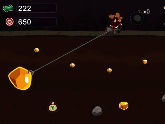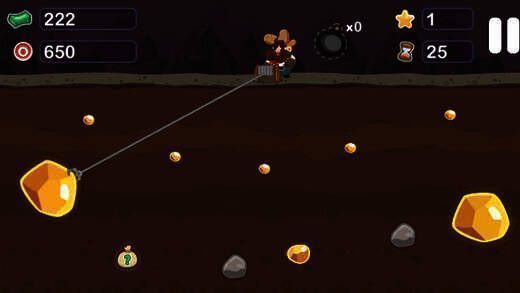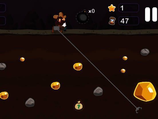 1、操作简单,钩子摇摆时,瞄准金子,点击屏幕就会放出钩子抓取。