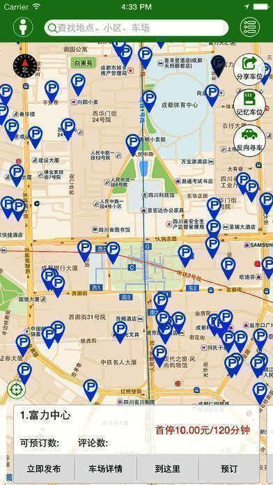 - 系统数据覆盖成都二环内多数停车场,收费信息、导航、停车攻略、室内地图和车位情况等清晰可见。