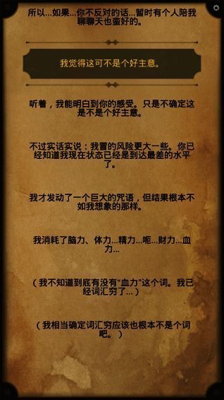 1、延续文字冒险玩法。2、游戏设置更精致,选择更丰富。3、玩家能输入自己的名字增强代入感。4、故事背景从科幻空间转变为奇幻世界。